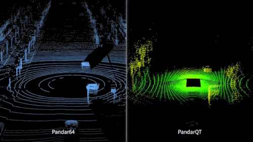 圖為:Pandar64與PandarQT點(diǎn)云的對(duì)比