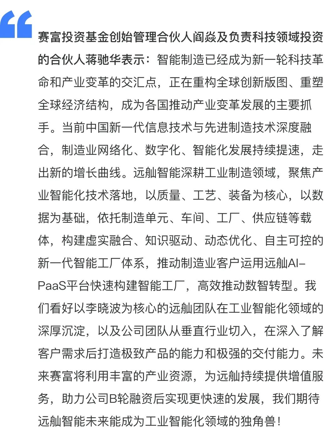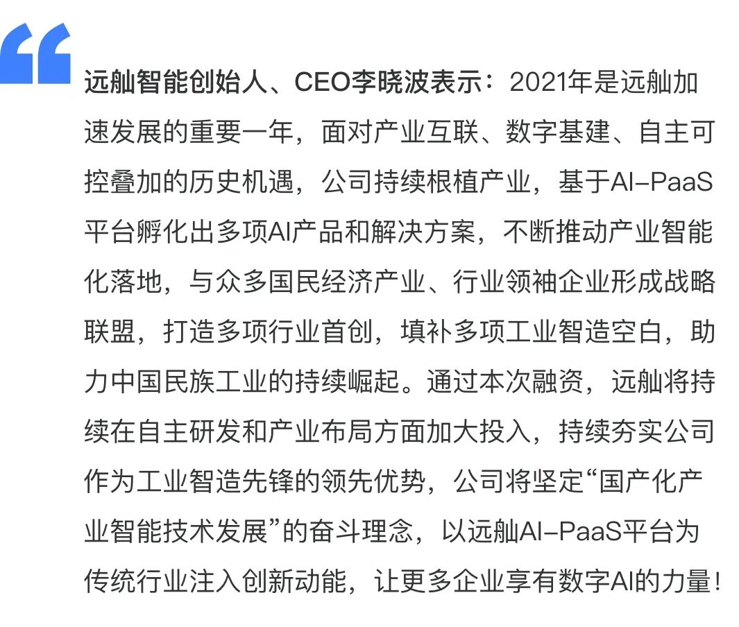 創(chuàng)新型工業(yè)AI-PaaS平臺(tái)提供商遠(yuǎn)舢智能已于近日完成2億元B輪融資,由國(guó)內(nèi)頂級(jí)投資機(jī)構(gòu)賽富投資基金領(lǐng)投,上海國(guó)資委旗下上實(shí)國(guó)際創(chuàng)投和國(guó)內(nèi)一線知名機(jī)構(gòu)鼎和高達(dá)跟投,同時(shí)老股東東方富海、六脈資本持續(xù)加碼。頂級(jí)創(chuàng)投與頭部產(chǎn)業(yè)資本重磅加持,充分驗(yàn)證了遠(yuǎn)舢智能堅(jiān)定推行的“All in AI& All in PaaS”戰(zhàn)略的成功,進(jìn)一步鞏固了遠(yuǎn)舢在數(shù)字化轉(zhuǎn)型企服市場(chǎng)的引領(lǐng)者位勢(shì)。