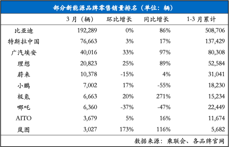 3月,新能源乘用車國(guó)內(nèi)銷量表現(xiàn)延續(xù)漲勢(shì),環(huán)比增長(zhǎng)23.6%;1-3月新能源乘用車國(guó)內(nèi)零售銷量達(dá)131萬(wàn)輛,同比增長(zhǎng)22.4%;國(guó)內(nèi)市場(chǎng)零售滲透率為34.2%,較去年同期提升6個(gè)百分點(diǎn)。