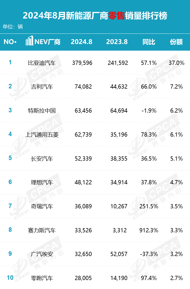 8月,新能源汽車產銷分別完成109.2萬輛和110萬輛,同比分別增長29.6%和30%,新能源汽車新車銷量達到汽車新車總銷量的44.8%。1-8月,新能源汽車產銷分別完成700.8萬輛和703.7萬輛,同比分別增長29%和30.9%,新能源汽車新車銷量達到汽車新車總銷量的37.5%。